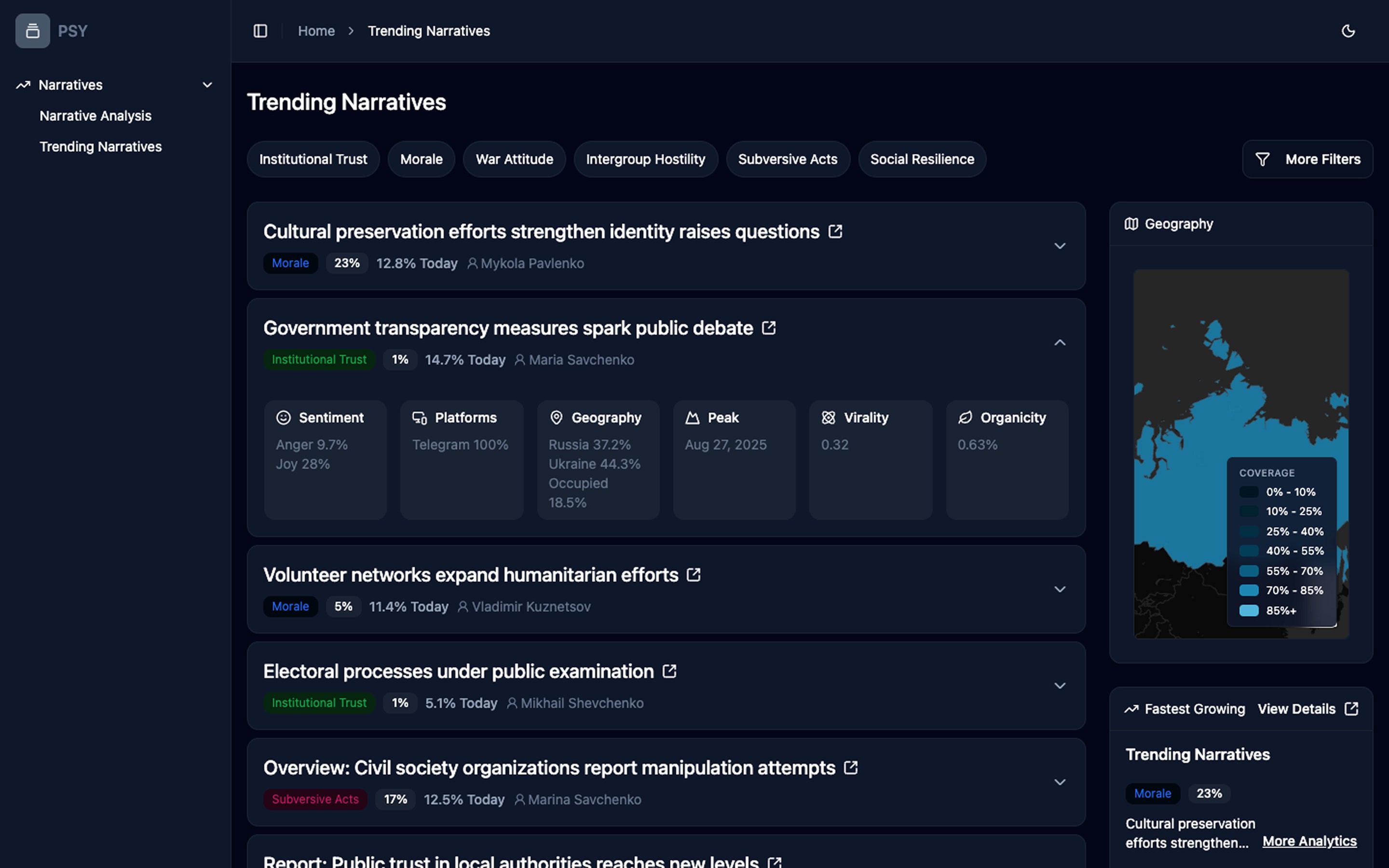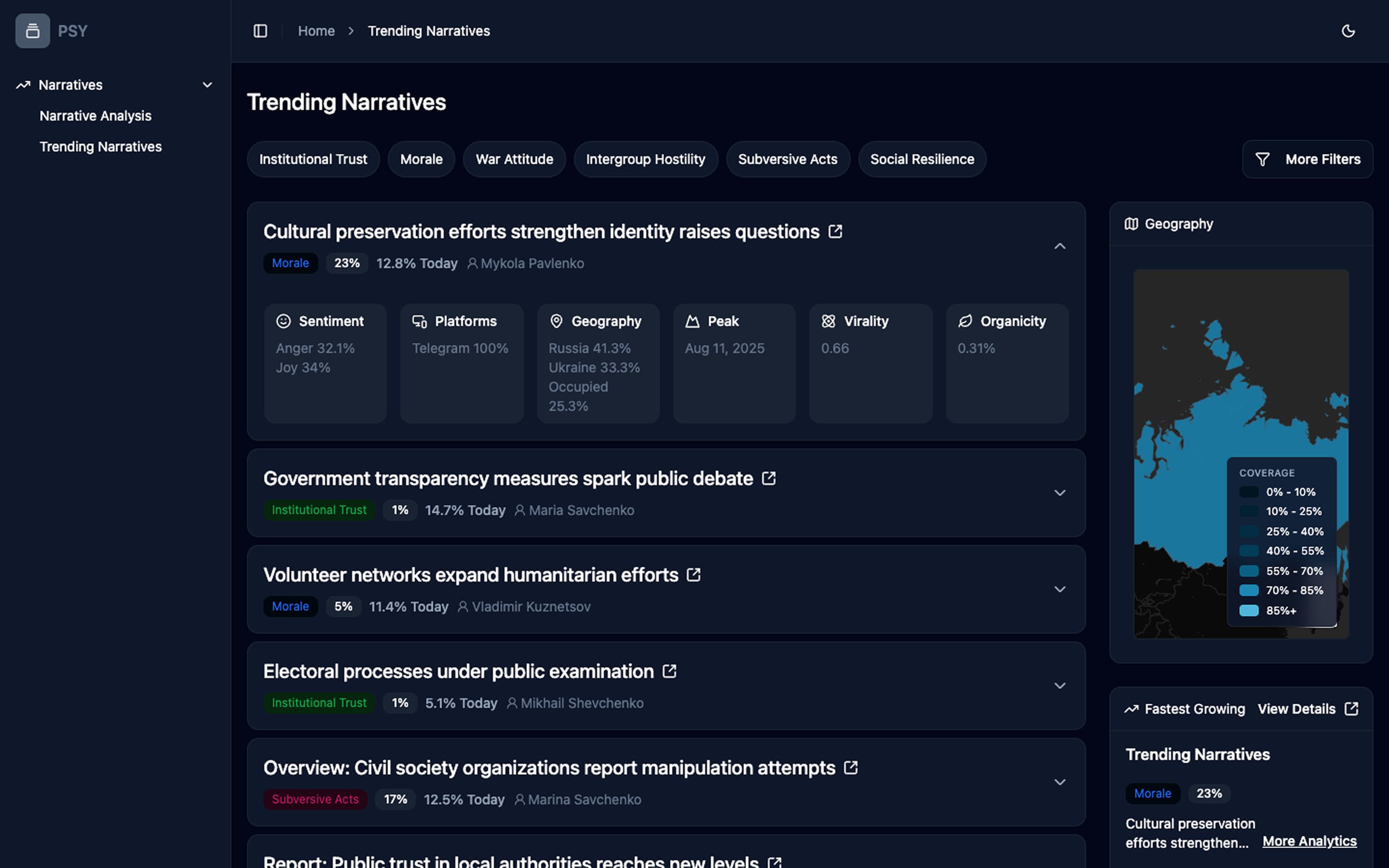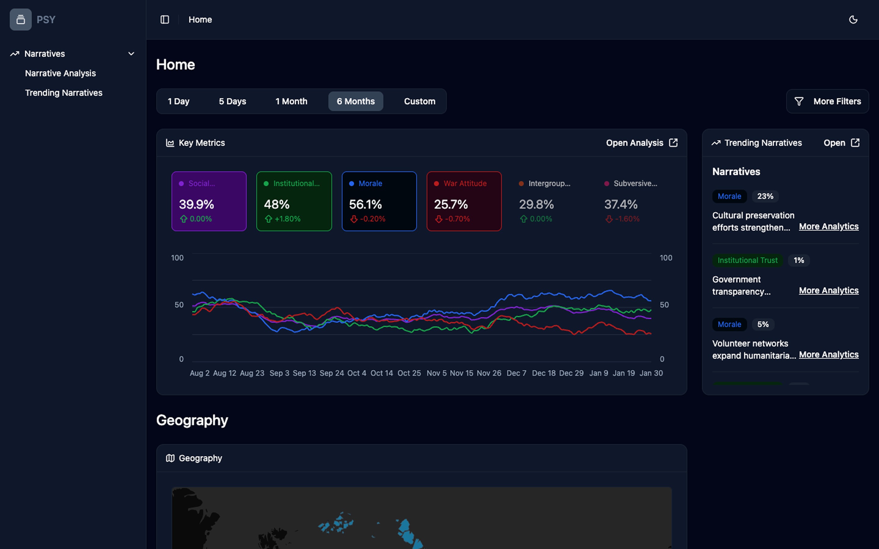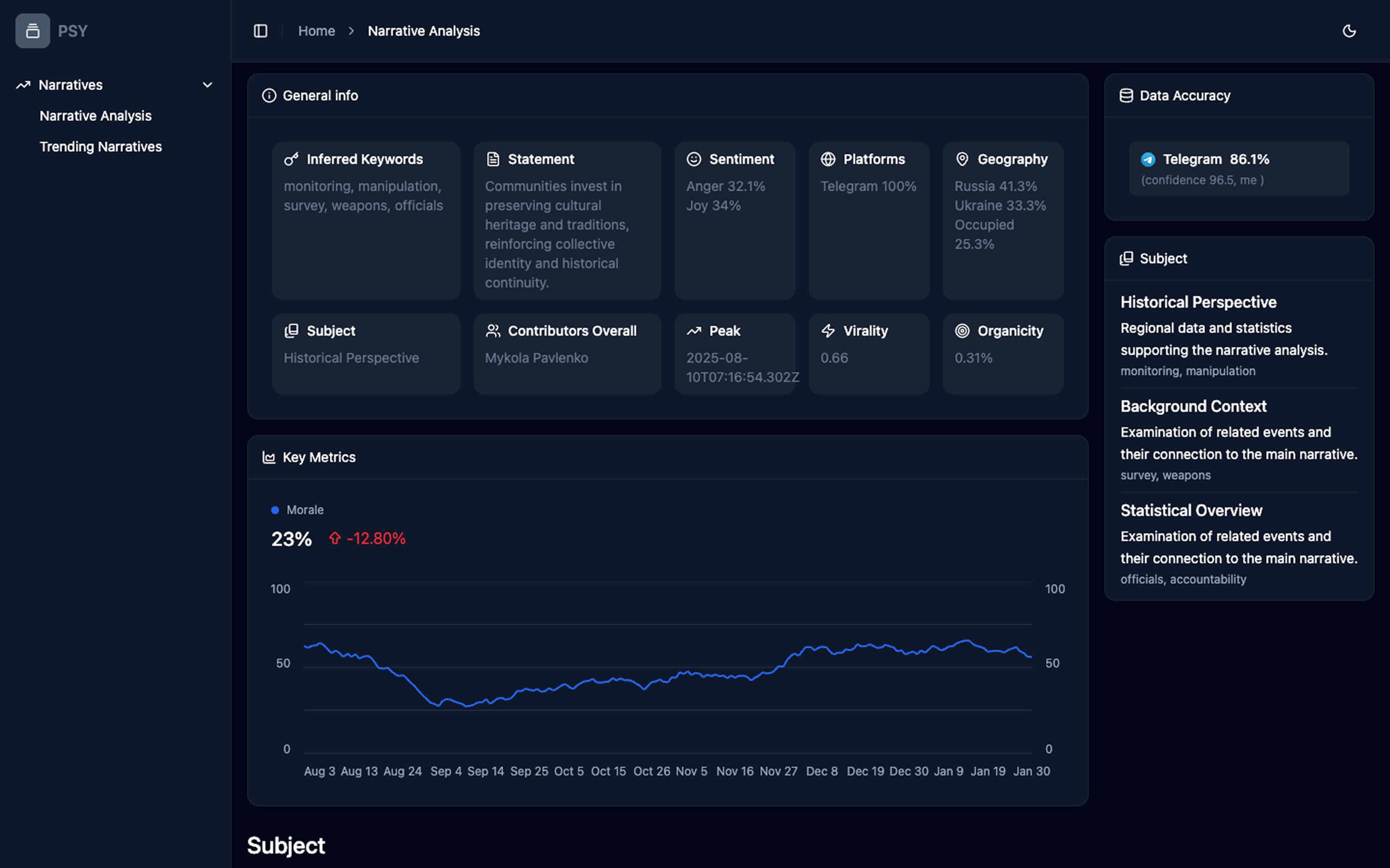 The intelligence backbone fusing battlefield, social, and behavioral signals into a single operational view.